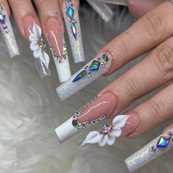 Keep up with the latest nails styling with our creative nails art services. We use vibrant colors and eye-catching designs with decorative add-ons such as crystals and diamonds